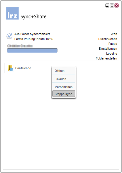 Falls der LRZ Sync+Share-Client deinstalliert werden soll, so empfiehlt es sich die Synchronisation für alle Ordner zu stoppen und dann mit der Deinstallation fortzufahren.