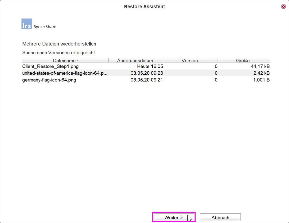 Zur Datenwiederherstellung müssen die erweiterten Einstellungen im LRZ Sync+Share-Client aktiviert sein (→ FAQ 203).