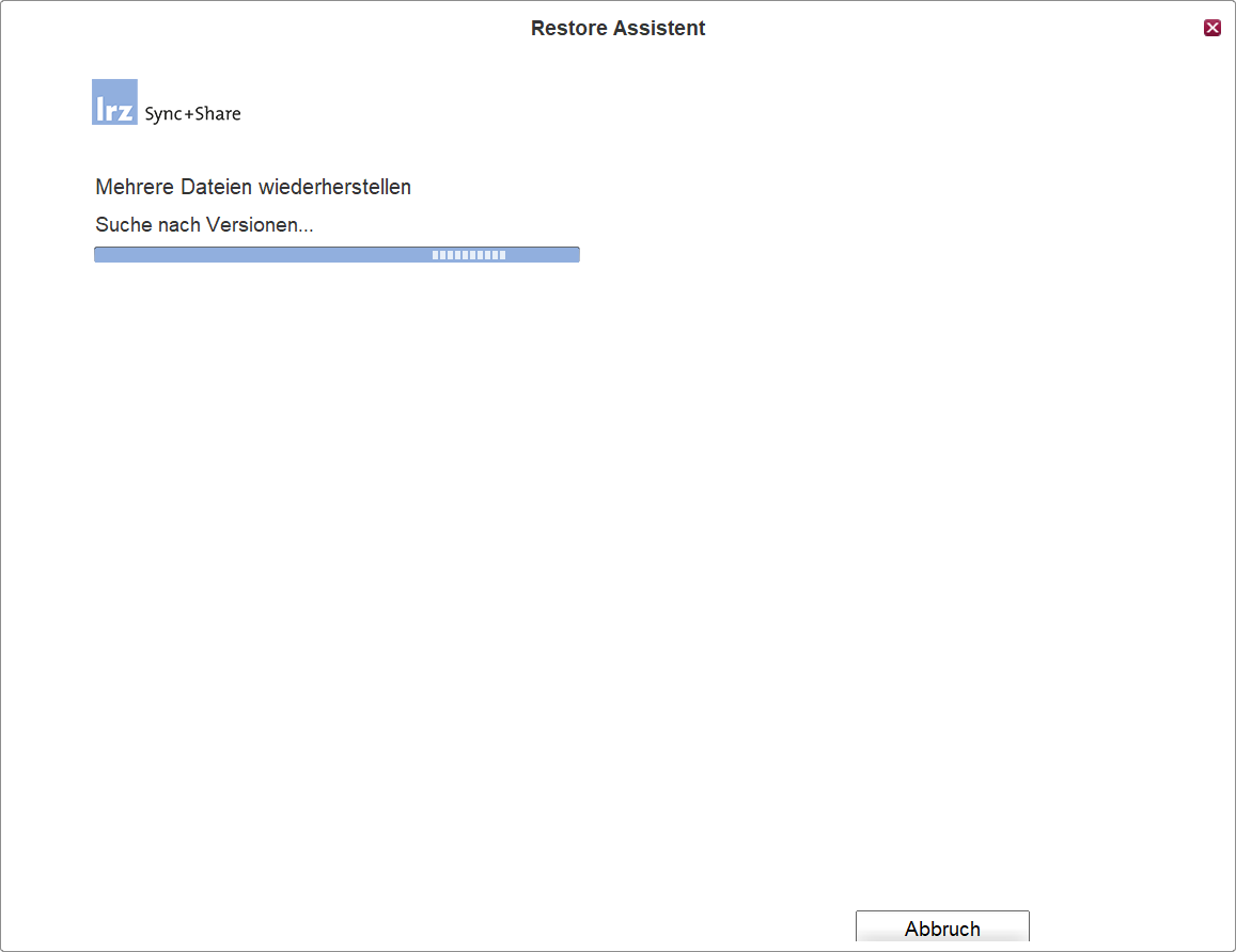 Bei der Wiederherstellung werden alle verfügbaren Dateiverläufe von Seiten des Clients und LRZ Sync+Share-Servers miteinbezogen. Je nachdem, wann die Dateiverläufe das letzte Mal bereinigt wurden, können dabei auch ältere, nicht mehr benötigte/relevante Dateien wiederhergestellt werden. Da auch die Dateiverläufe aus dem lokalen (versteckten) " | |||
