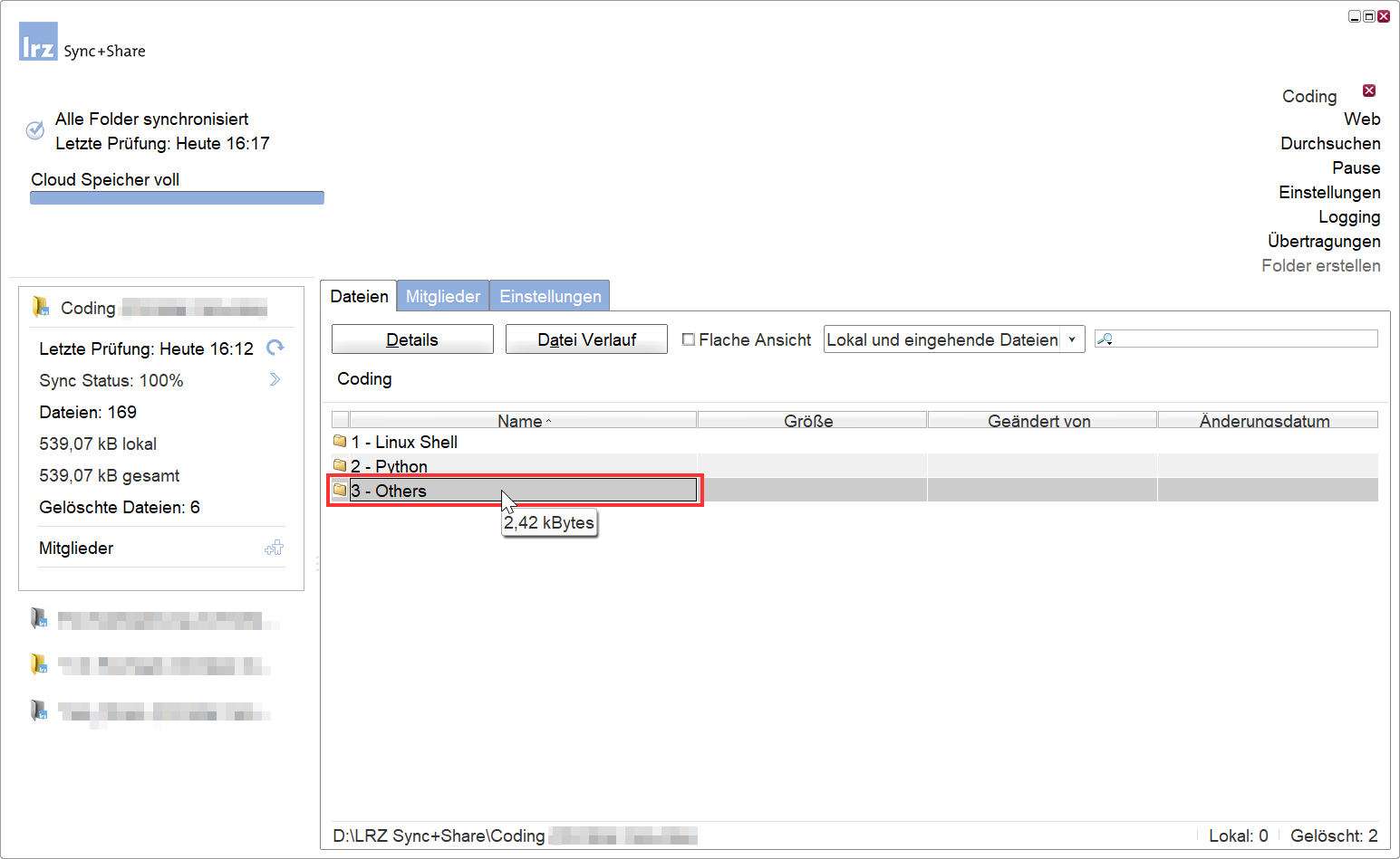 Dabei wird direkt auf dem LRZ Sync+Share-Server gearbeitet. Die Änderungen werden dann von dort zu den Clients synchronisiert.