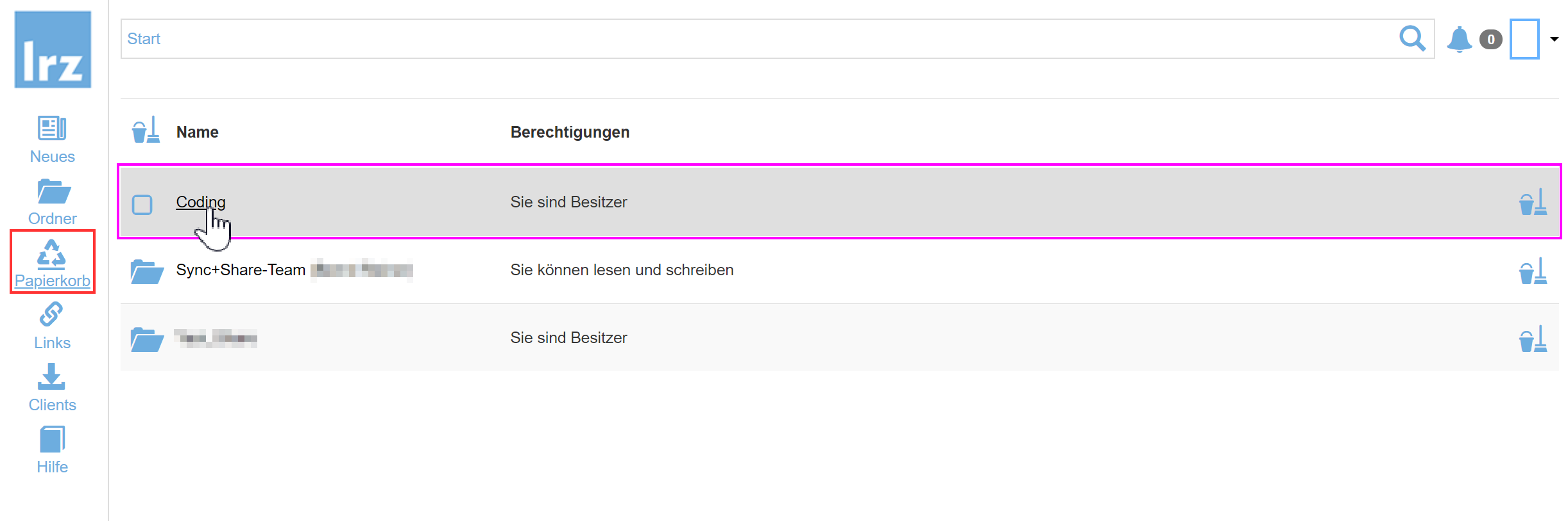 Gelöschte Daten können über das Webinterface als auch über den LRZ Sync+Share-Client wiederhergestellt werden.