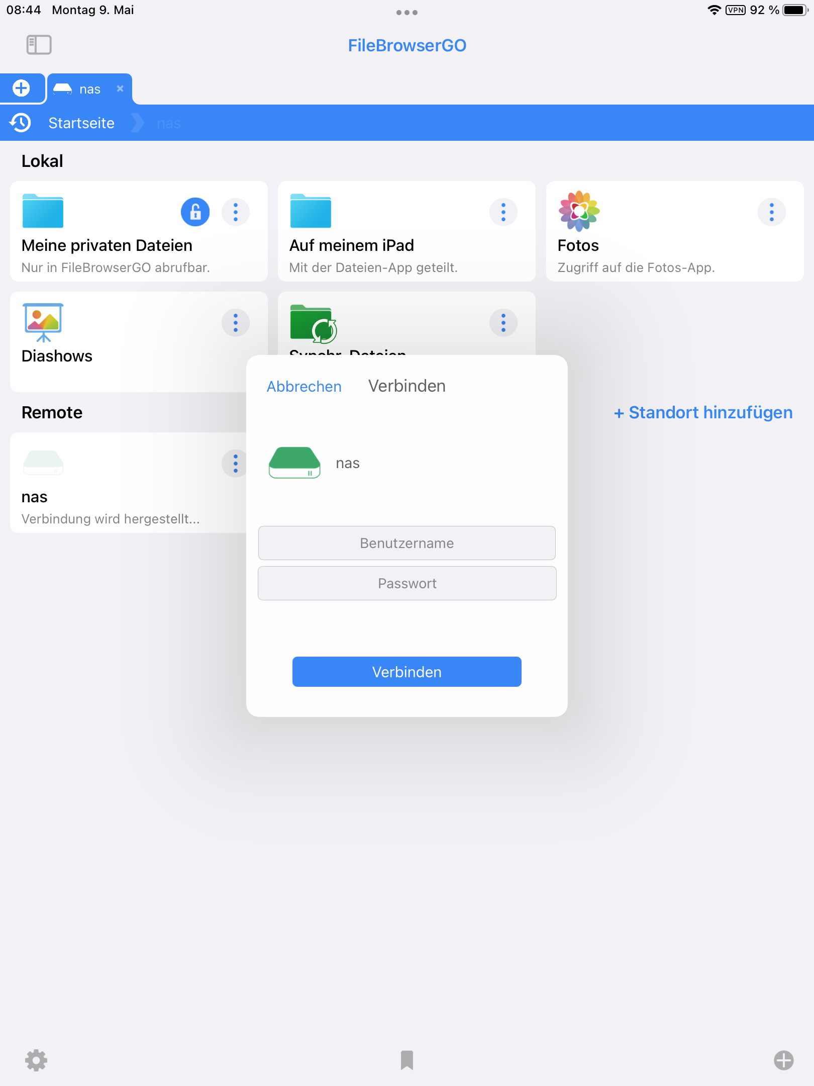 Verbinden eines Laufwerks unter iPadOS