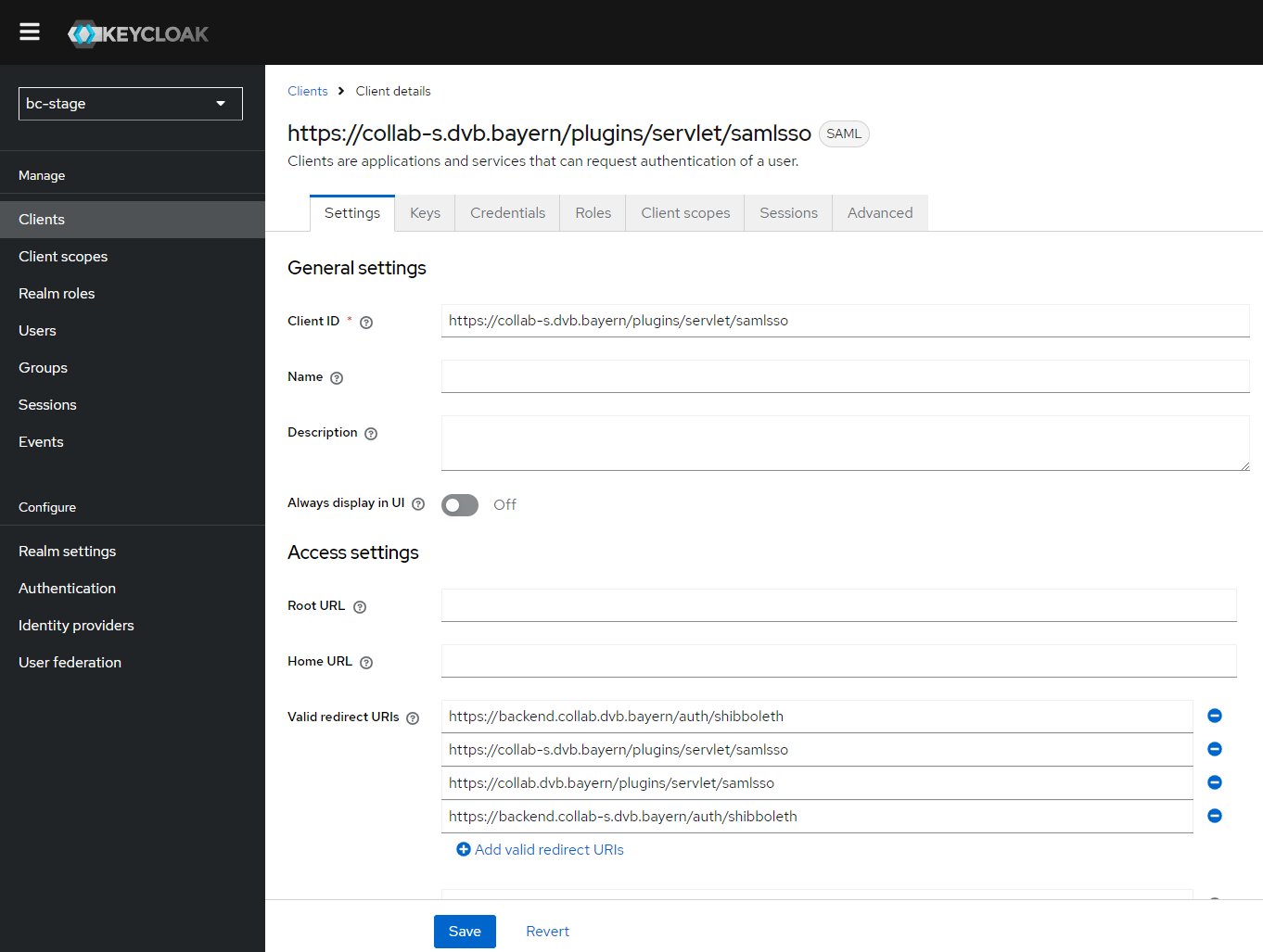 Dann speichern und dem LRZ die Keycloak-Metadaten ans LRZ übermitteln: