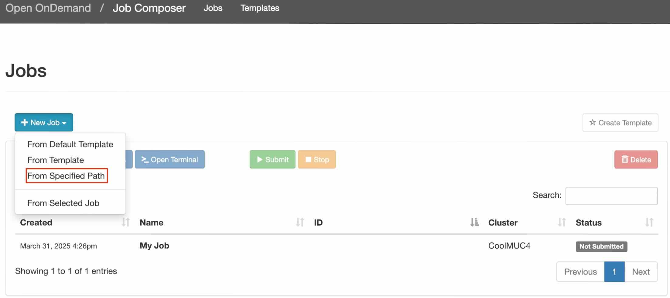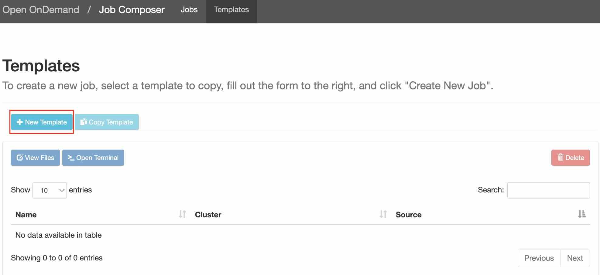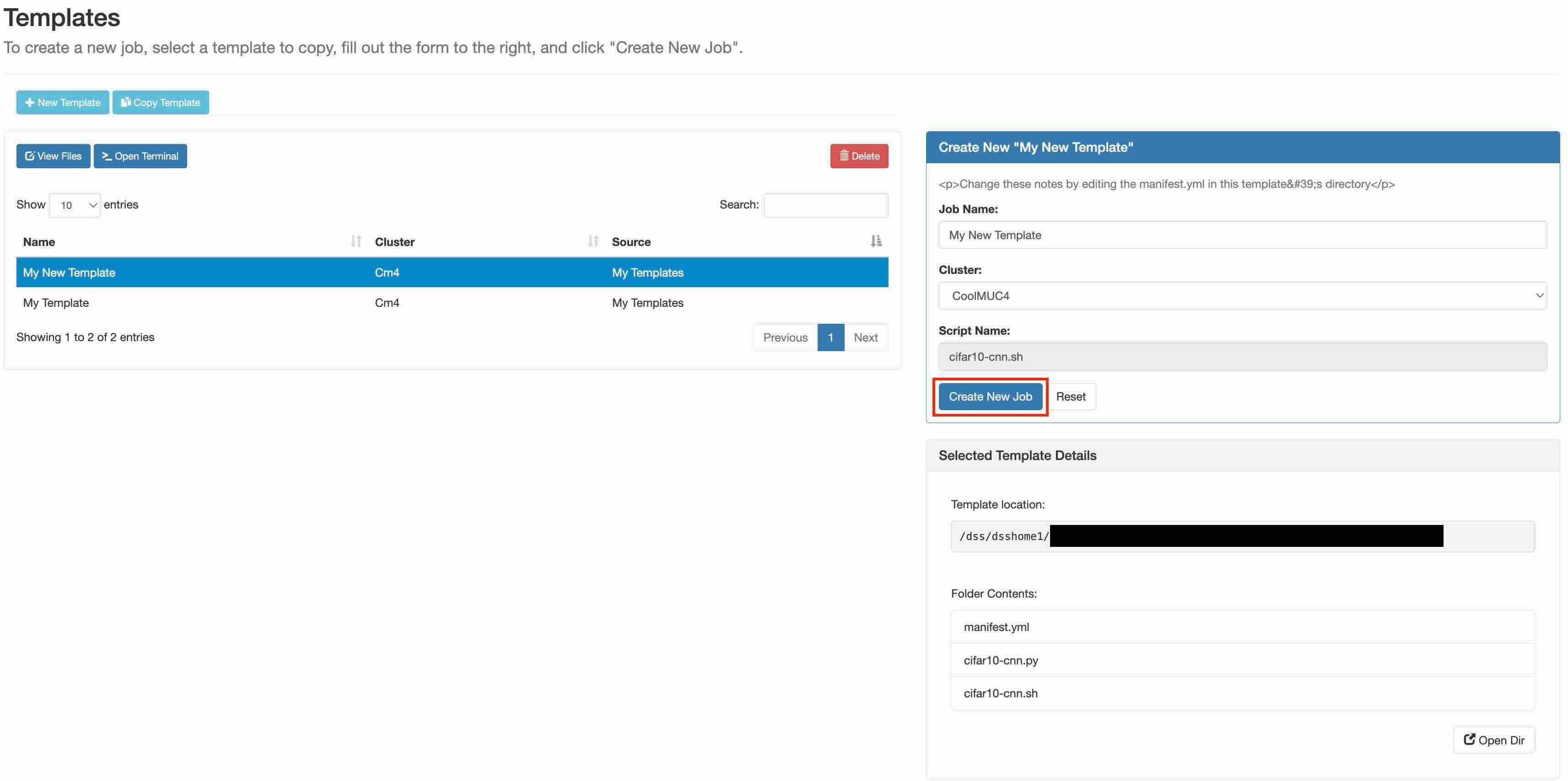 There are two methods for creating job templates: from an existing job or an arbitrary path in your HOME directory.
