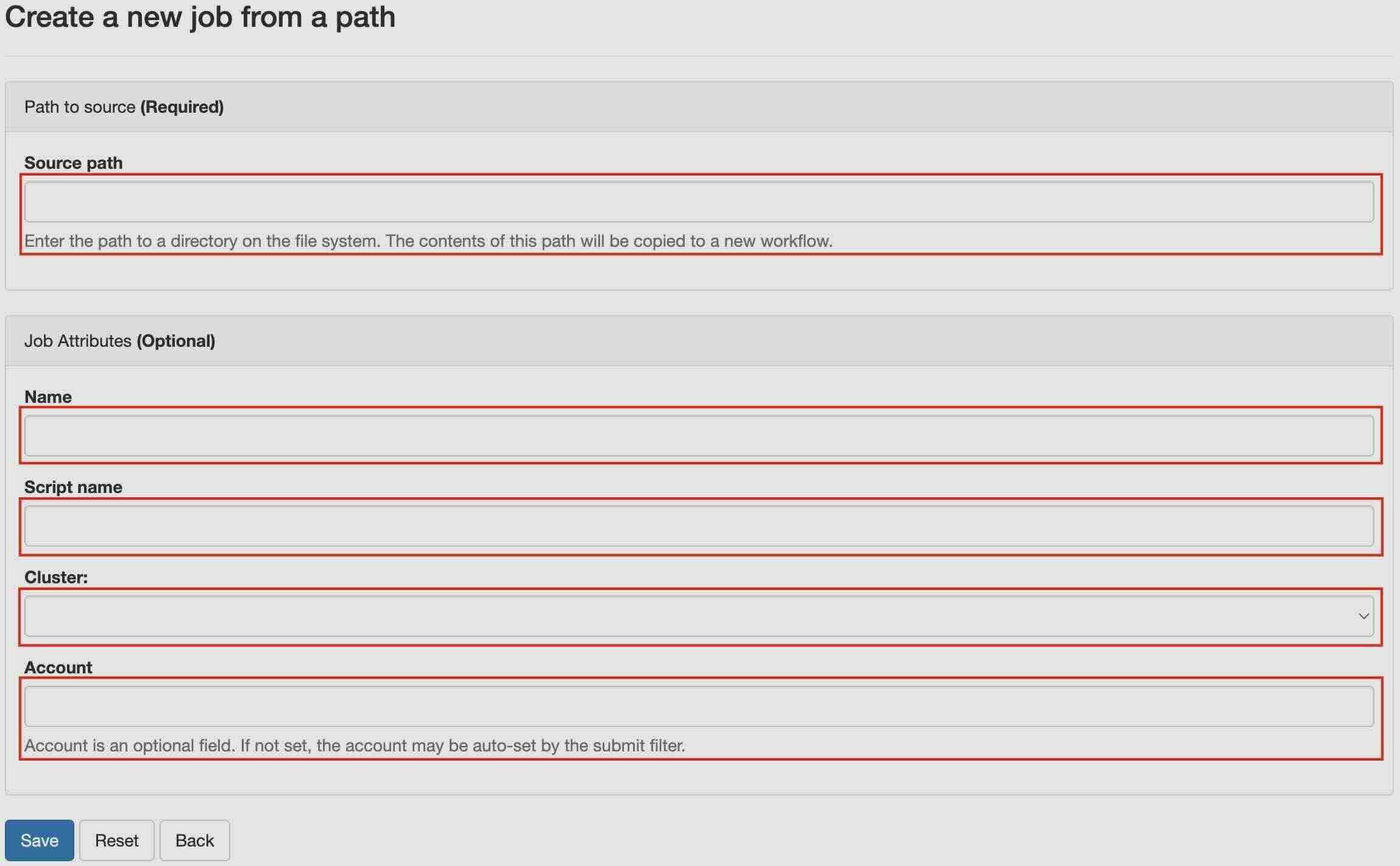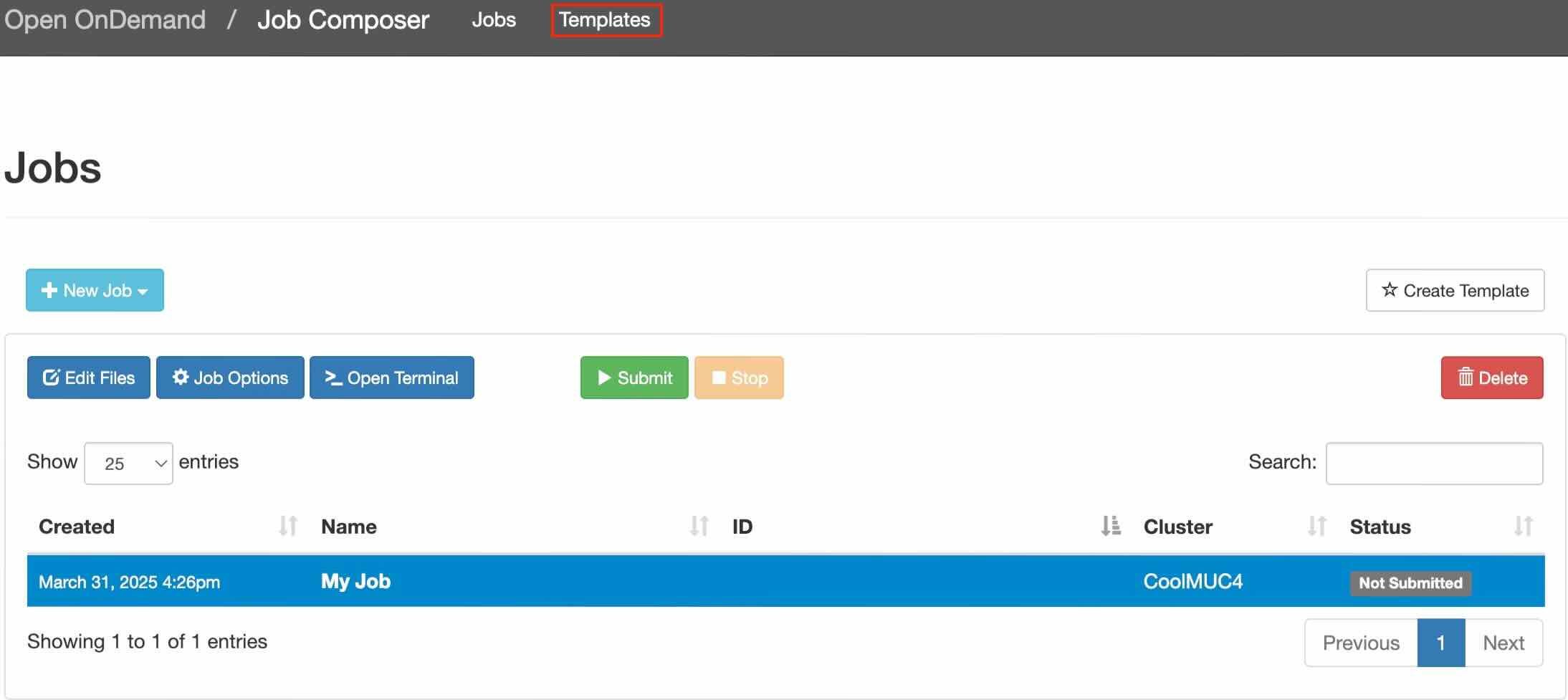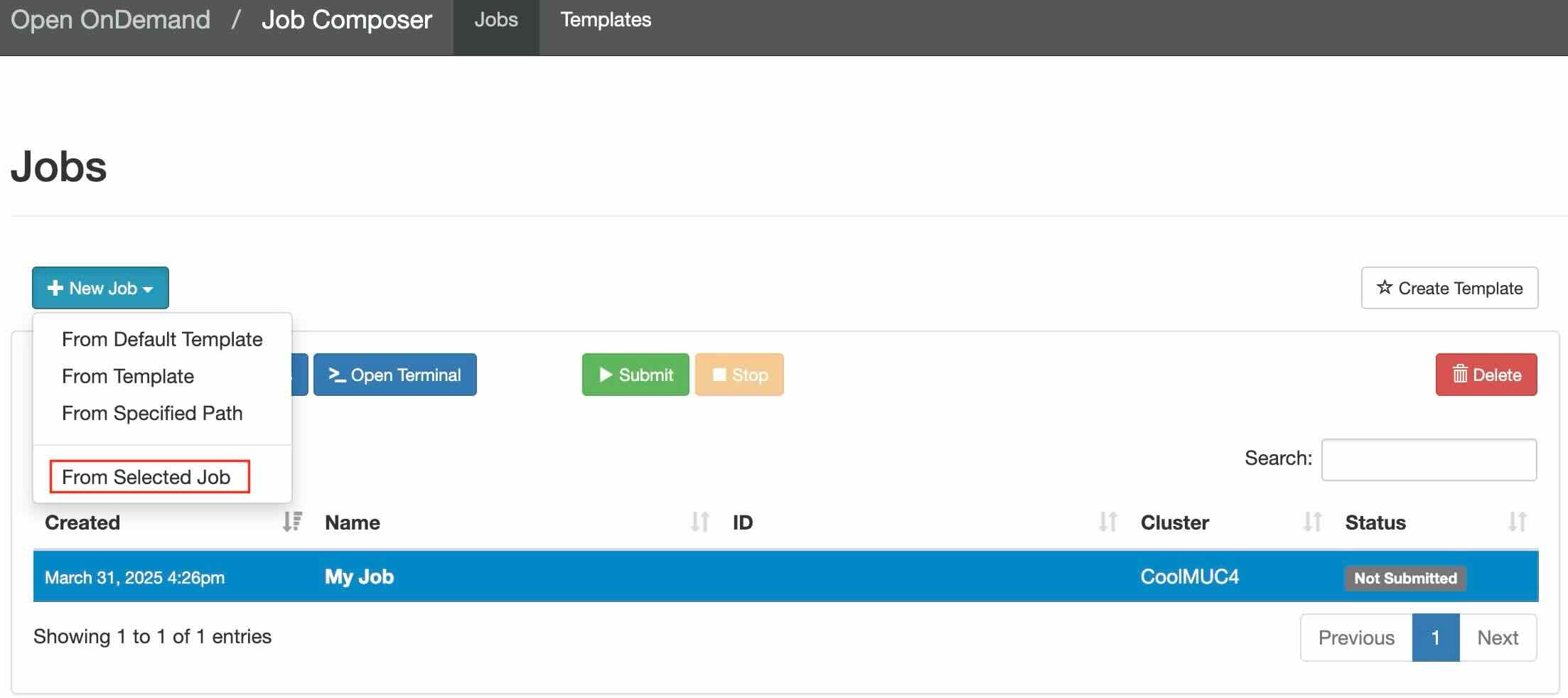 There are two methods for creating job templates: from an existing job or an arbitrary path in your HOME directory.