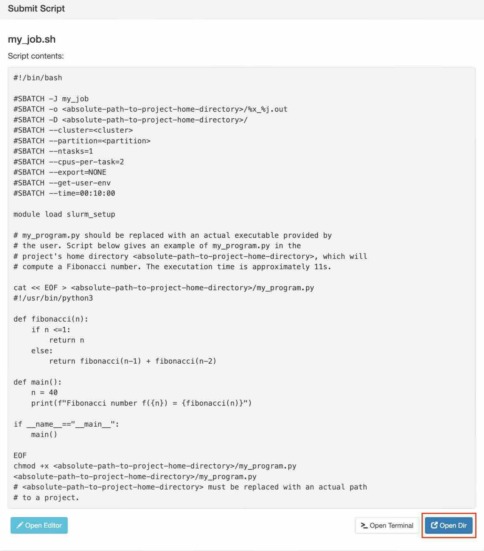 You can open the path in the file explorer by clicking the Edit Files icon in the upper left corner or the Open Dir icon at the bottom of the Submit Script section.