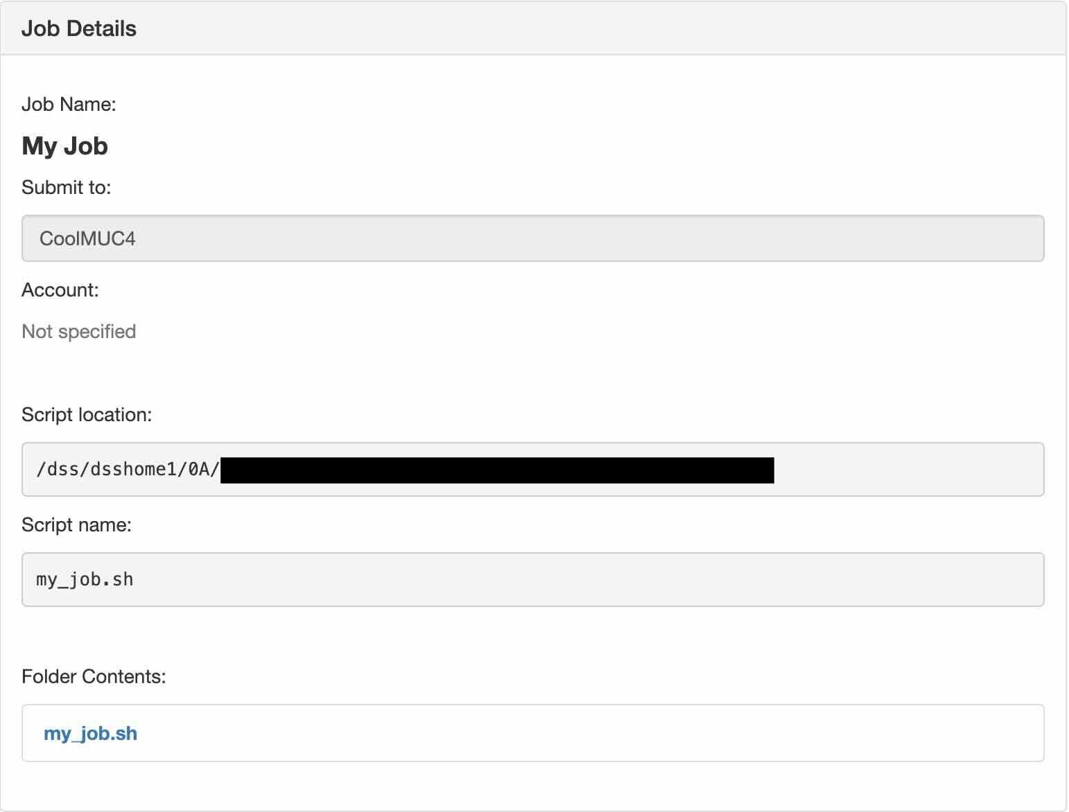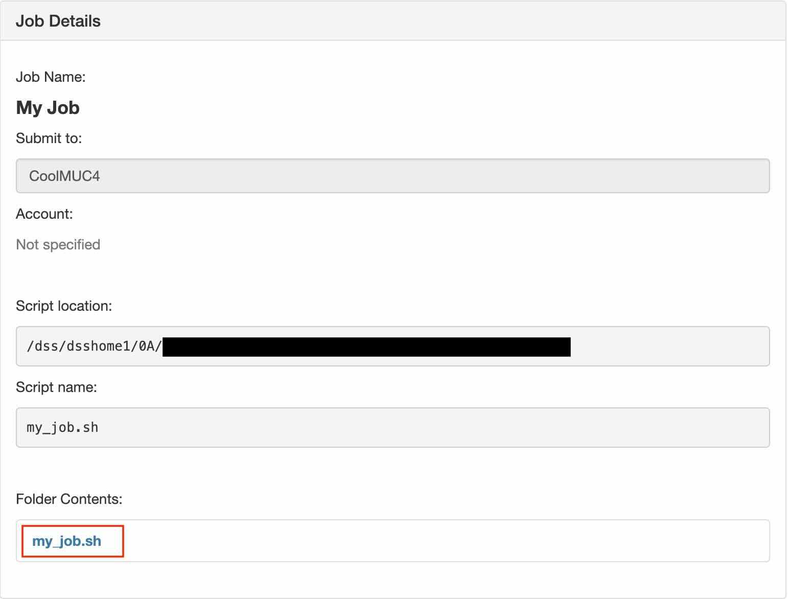 On the right side, two subsections will appear. The upper section is titled Job Details, and below it, the Submit Script section is displayed.