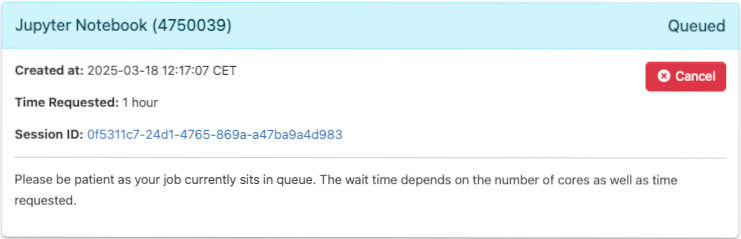 Next, you will be brought to the starting status page of the application. You need to wait as your job will be in the queue. The wait time depends on the number of cores as well as the time requested