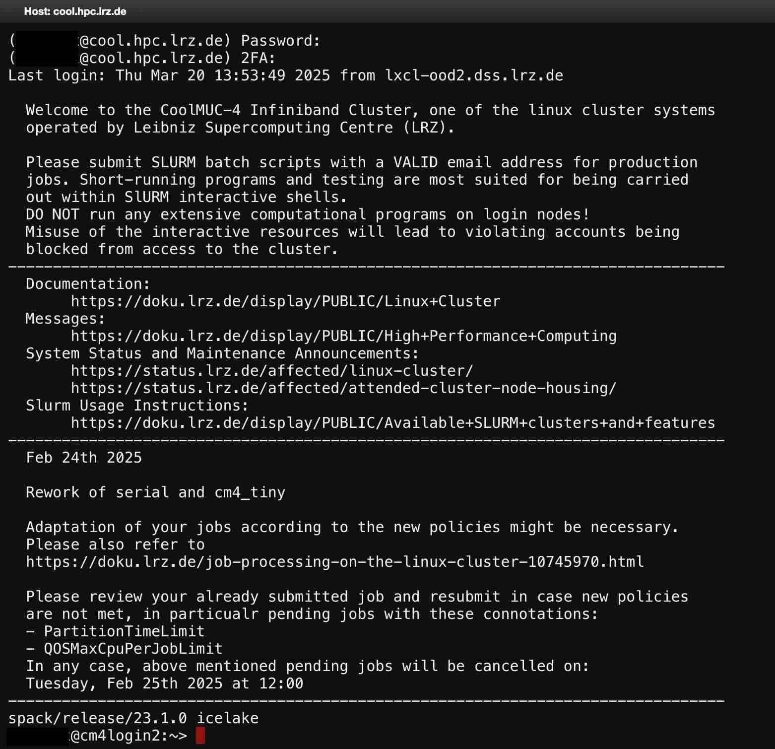 It may take a few seconds for the terminal to load. You will be prompted to enter the password associated with your Linux Cluster account.