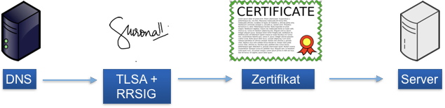 So bietet DANE eine vom Zertifikatsvertrauen unabhängige Überprüfung der Authentizität des Servers, mit dem eine TLS-Verbindung aufgebaut werden soll.