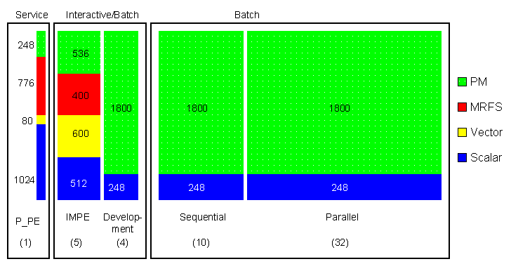 • Partition Managed Memory: ähnlich wie Vektorielles Memory. Die Zuweisung des Memorys für JOBEXEC- und NQS-Jobs erfolgt jedoch durch den Partition Manager, der je nach Memory-Priorität ggf. Jobs auf Platte auslagert und andere vorzieht.