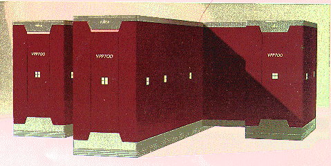 Am LRZ steht ein Rechner des Typs VPP700/52, d.h. eine Maschine mit 52 Prozessor-Elementen mit je 2 GByte Hauptspeicher. Er ist mit einem Plattenspeicher von insgesamt 1214 GByte ausgestattet, wovon 1123 GByte auf RAID-Plattensystemen zur Verfügung stehen. Die RAID-Platten sind zu gleichen Teilen an insgesamt 5 PEs (sog. IMPEs, IPL Master PEs, die auch I/O abwickeln) angeschlossen; eine Ausnahme bildet das Gen5-XLE-Plattensystem, auf dem insbesondere das Dateisystem /ptmp_vfl_large für große Projekte liegt. Das primäre PE betreibt nur Systemplatten und Netzanschlüsse. Die 5 IMPEs sind ebenfalls mit Netzanschlüssen (FDDI) ausgerüstet.