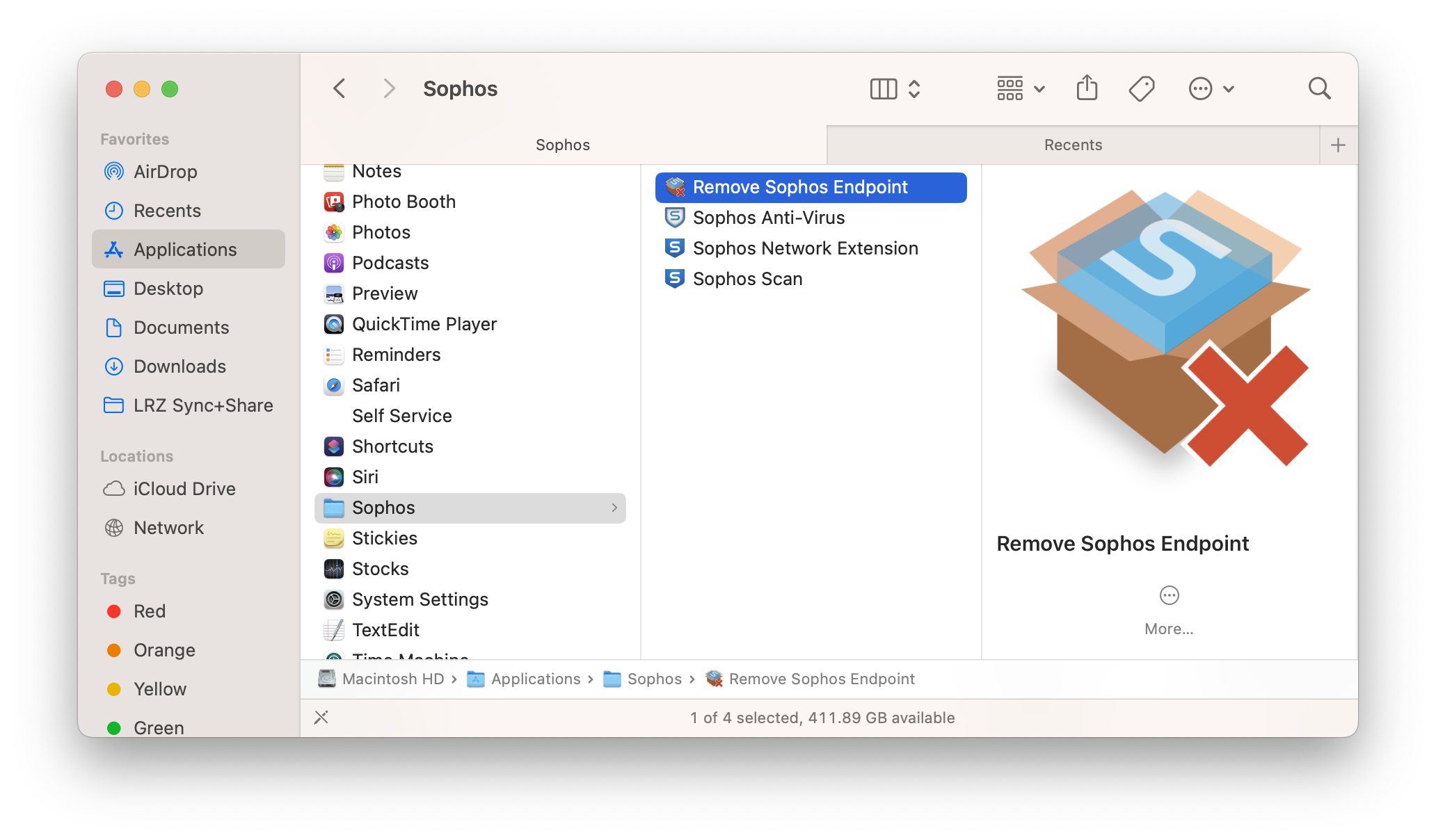 Schritt 2: "Remove Sophos Endpoint" Funktion finden