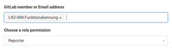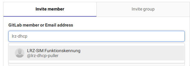 Zur Bereitstellung der CSV-Datei bietet sich der LRZ-Gitlab-CE-Server an. Der Abruf der CSV-Datei erfolgt dabei unter Nutzung einer Funktionskennung, die auch direkt auf ein sonst zugangsbeschränktes Projekt berechtigt werden kann. Dazu navigieren Sie im Projekt unter Members und tragen Sie den Nutzer lrz-dhcp-puller mit mindestens der Rolle "Reporter" ein.