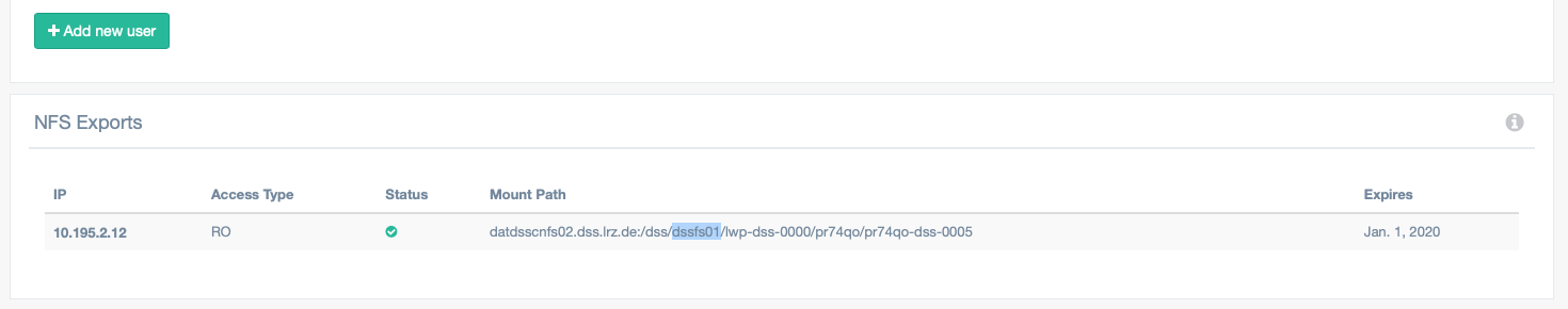 In the example the DSSNFSSERVER is: datdsscnfs02.dss.lrz.de and the <DSS Filesystem> is: dssfs01