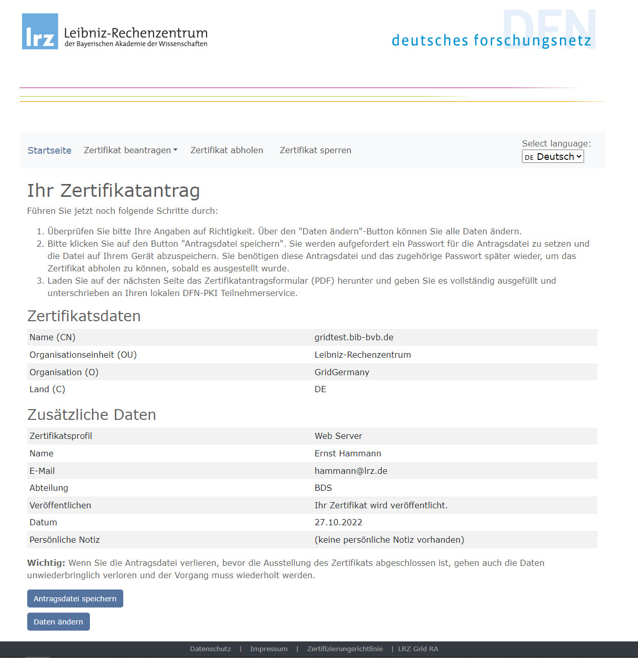 Beantragt wird ein GRID-Zertifikat über diese URL: https://pki.pca.dfn.de/dfn-pki/grid-root-ca/101