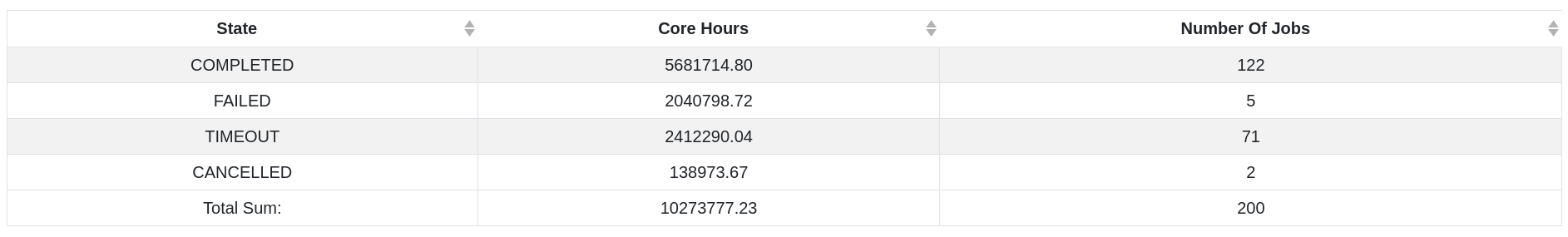 Please note that requesting large amounts of information may take a long time. We have no way around this problem, your only protection against long waiting times is to limit the number of jobs on the input mask. More specifically putting a limit in the "Max number of jobs" field. We recomend a maximum of 20 jobs when you will like to request performance data. If you choose to request accounting data only, you may increase this limit to 15000 jobs which should be more than enough for most projects to check all your data.