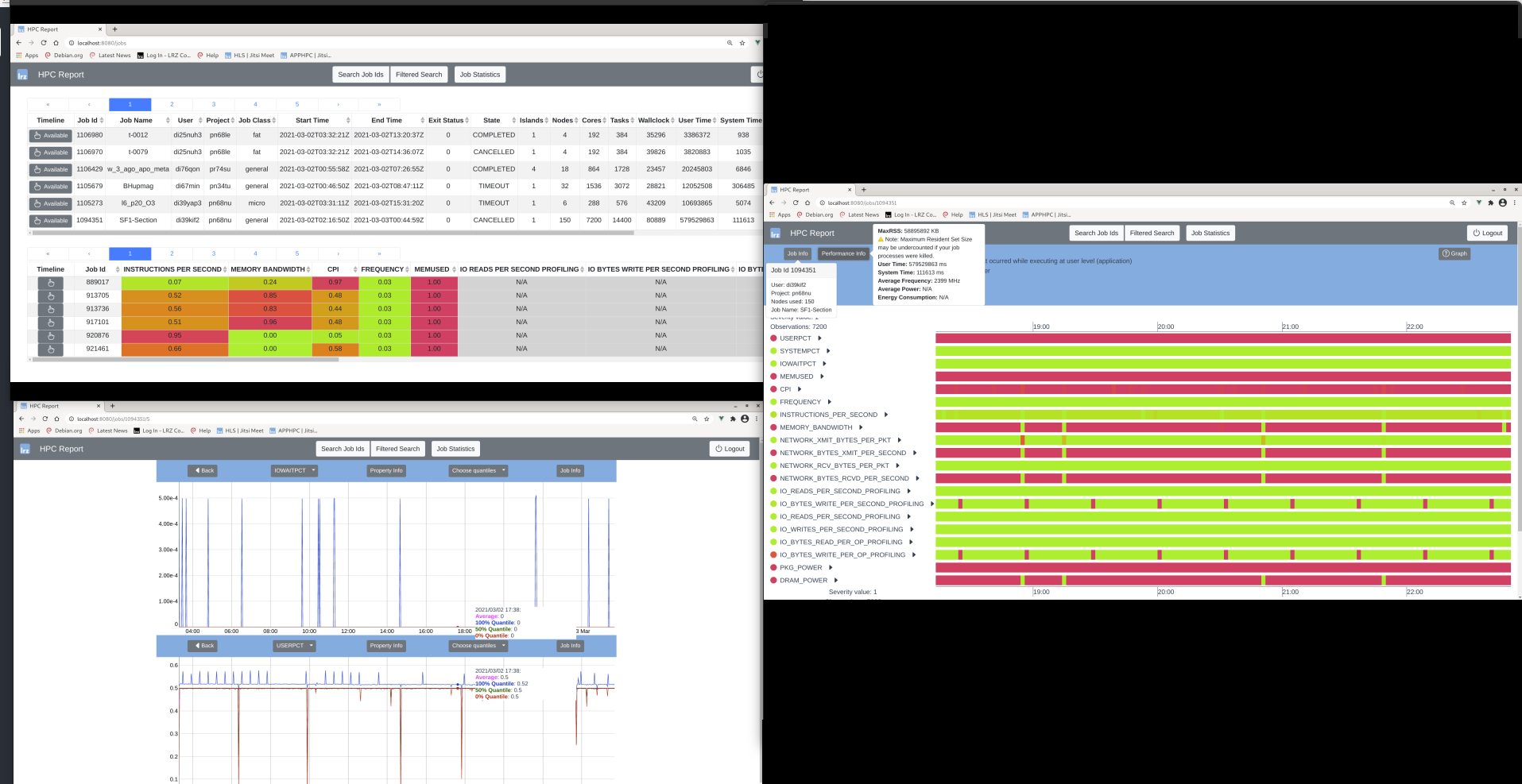 The HPC Report shows aggregated performance information about your submitted jobs on the nodes of SuperMUC-NG. The report is based on the PerSyst and DCDB Tool which collects performance properties of all running jobs every 2 minutes. No instrumentation is needed nor modifications to the user codes.