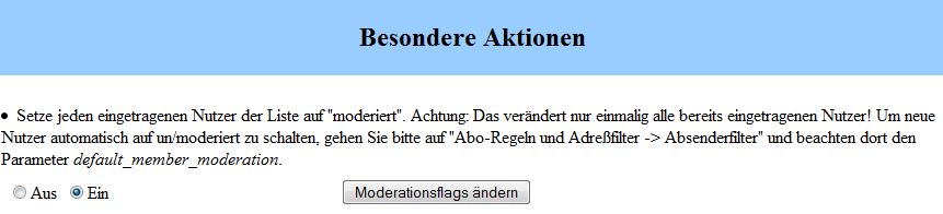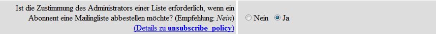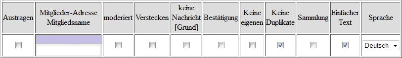 Bei einer zentralen Verwaltung dürfte es außerdem sinnvoll Mitglieder daran zu hindern sich selbst auszutragen. Dies geschieht durch folgende Einstellung unter "Abo-Regeln und Adreßfilter...":Anschließend Klick auf den Button "Änderungen speichern" am Ende der Seite.