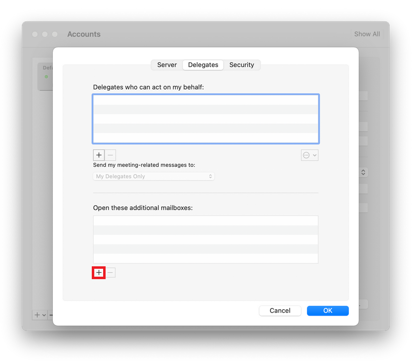 A window will open where you can search the address book for the person who gave you the delegation. If you do not find the person whose proxy you want to make, he/she is not in the address book and you will not be able to open their mailbox.
