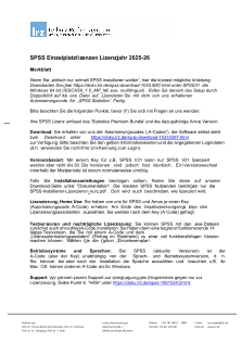 Die Campus-Lizenz des Statistikprogrammpakets SPSS der Firma IBM darf sowohl an Instituts- als auch an häuslichen Geräten für nicht kommerzielle Forschung und Lehre benutzt werden.