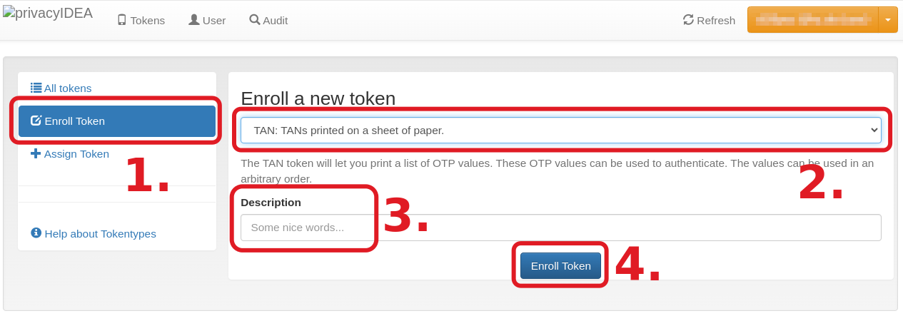 Done! Now, the TANs can be used as one-time passwords (OTP). We recommend to remove used OTPs from the list! | Figure 1: Steps 1 - 4 of TAN-token rollout (click on image for large view)