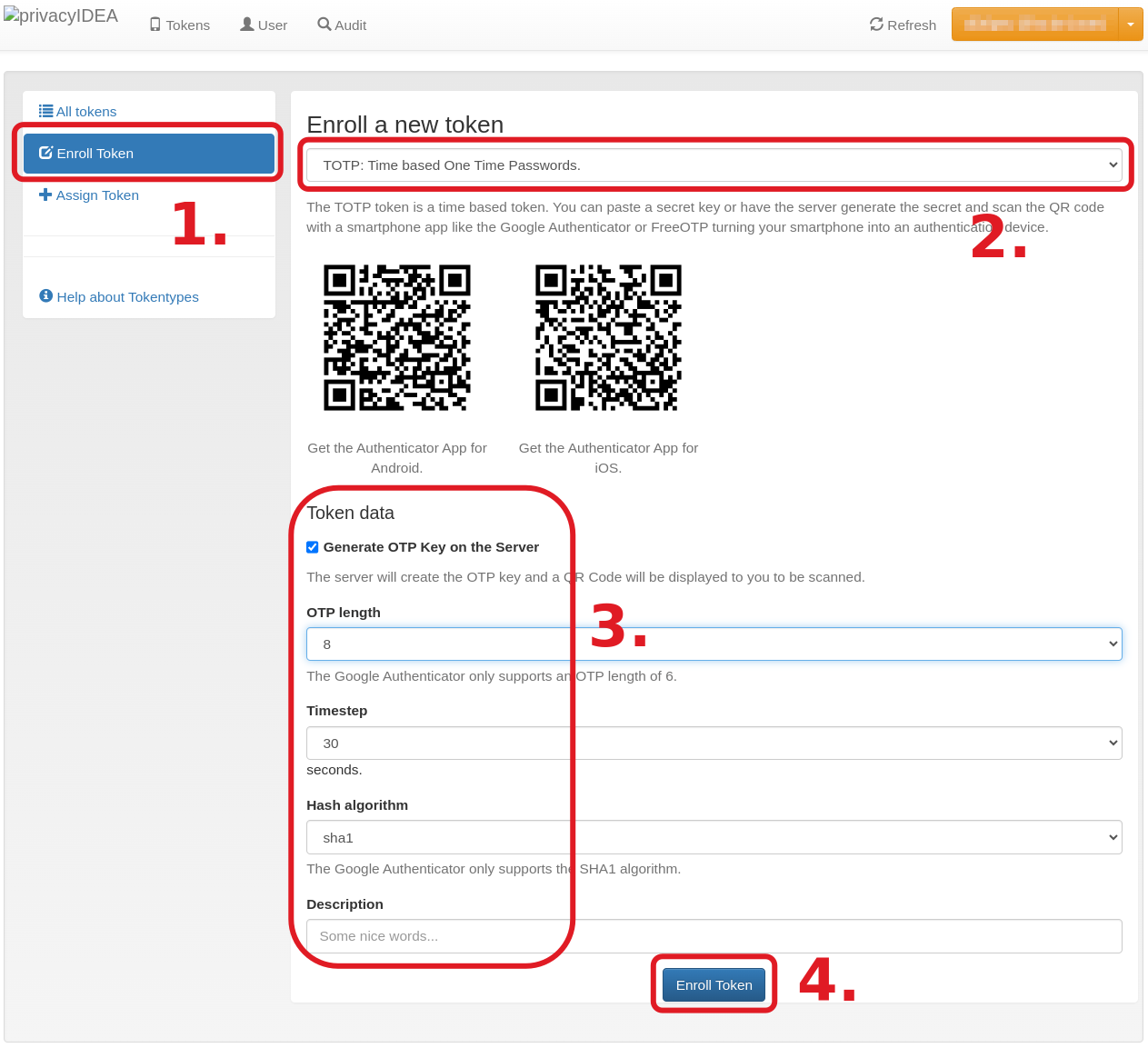 | Figure 1: Steps 1 - 4 of TOTP-token rollout (click on image for large view)