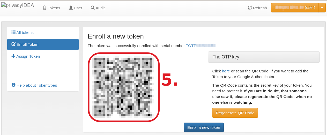 Figure 2: TOTP token rollout successful and according QR code (click on image for large view)