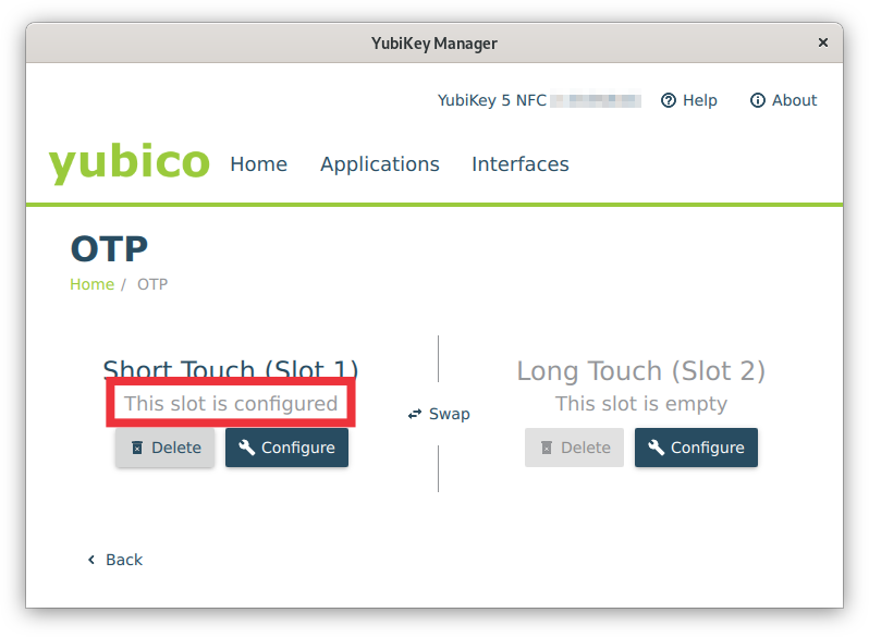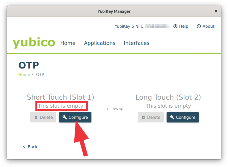 Fig. 3: YubiKey Manager - Slot selection (click on image for large view)
