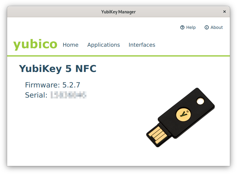 Fig. 1: YubiKey Manager - Home screen (click on image for large view)