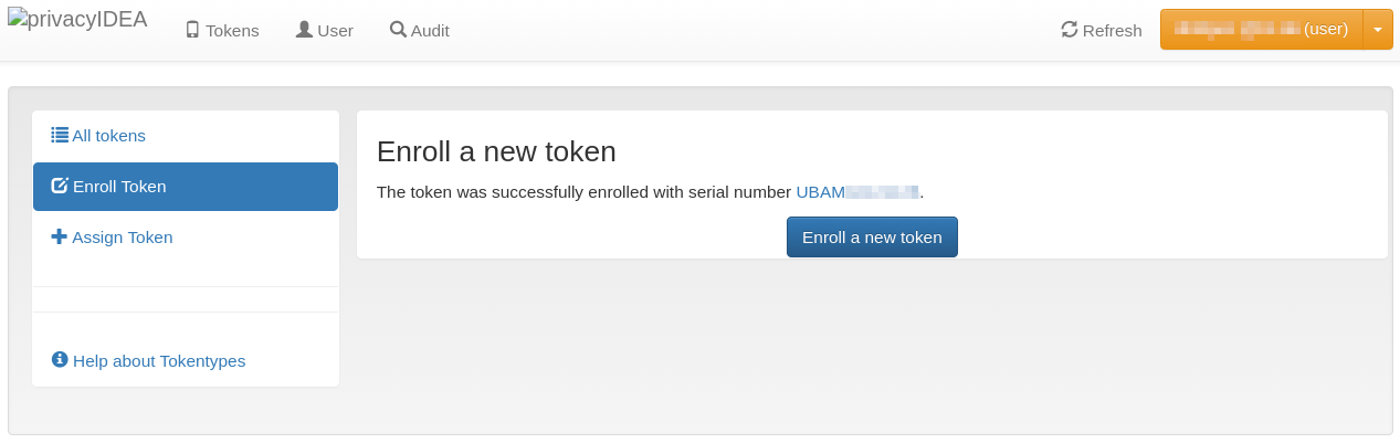 Using YubiKey serial as public ID: vvccccvblhlu Using a randomly generated private ID: a4b67dc931a1 Using a randomly generated secret key: c157d96a6b551f8b9414ab6d94b6a54c Upload credential to YubiCloud? [y/N]: N Program an OTP credential in slot 2? [y/N]: Y Copy the output of line "Using a randomly generated secret key"! This is the secret AES key which you will need to complete the rollout of the YubiKey token. |