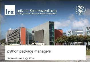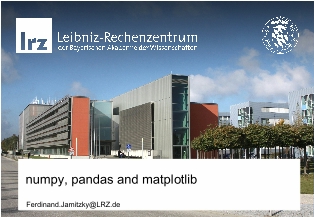 LRZ Dokumentationsplattform ... Beratung Education and Training Lecture Notes and Materials Data Analytics, Big Data and AI Training Courses at LRZ Using Python at LRZ Material Please visit https://survey.lrz.de/index.php/476689?lang=en and rate this course!