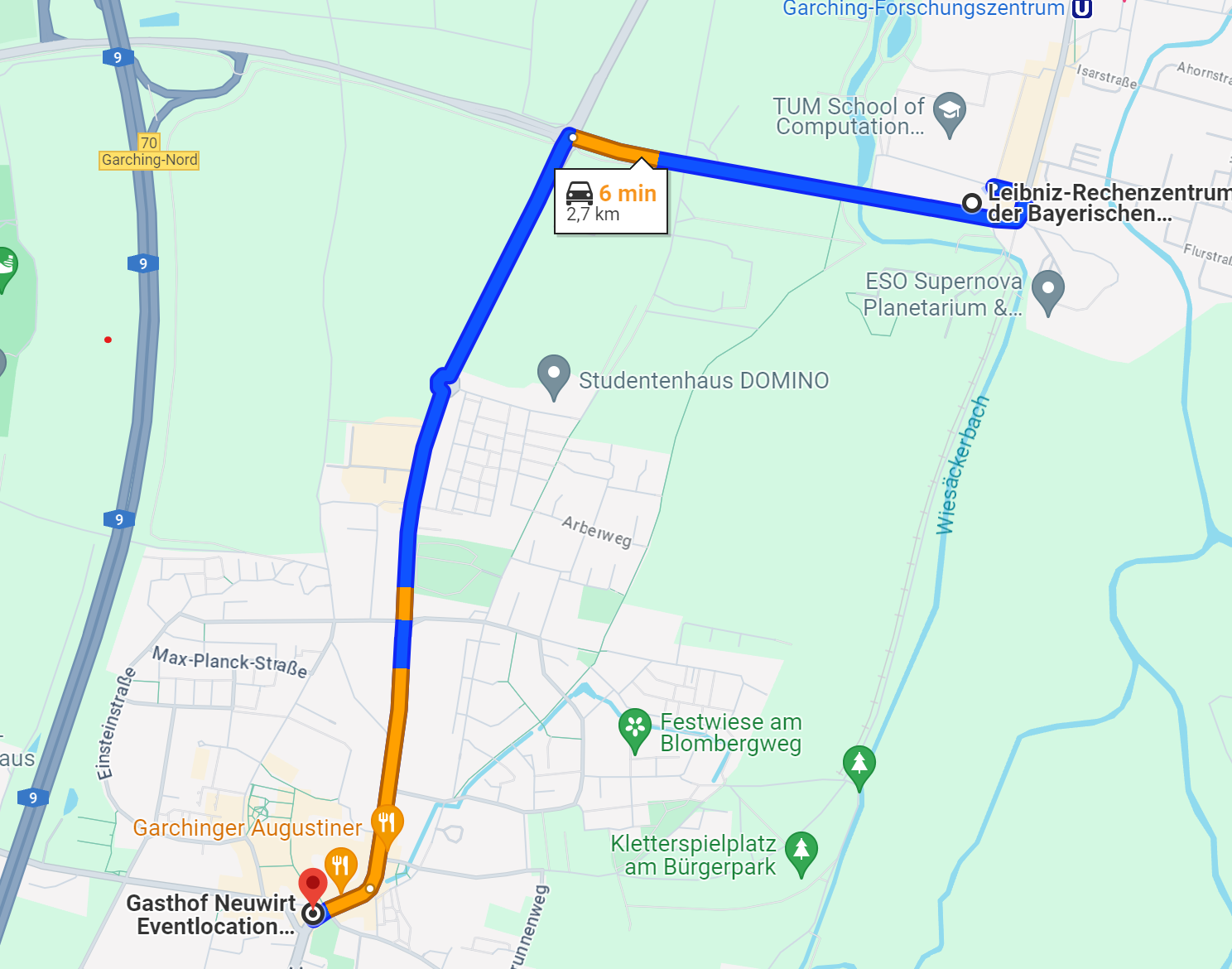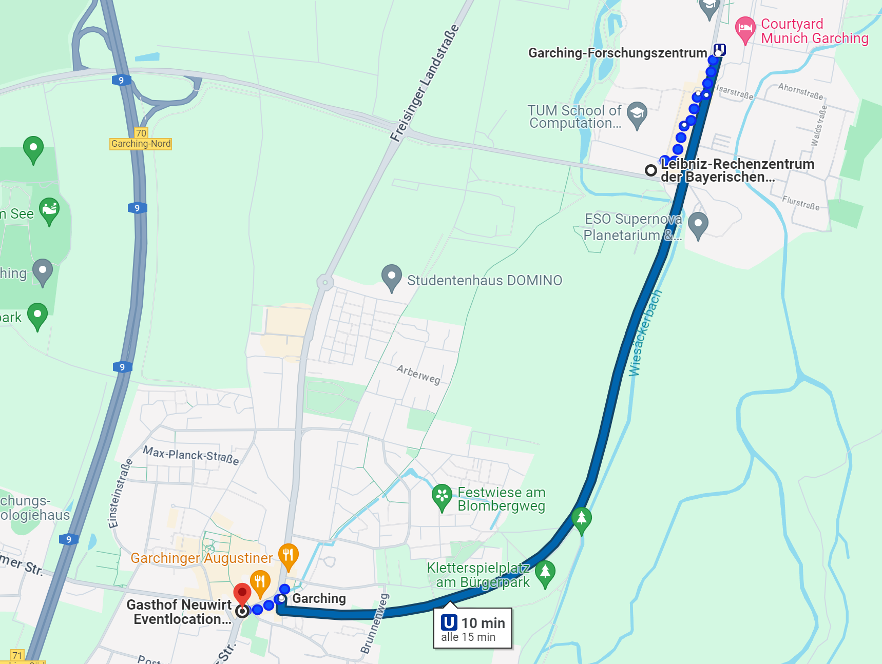 on foot: 30 minutes walk | by train: 10 minutes 1 station with subway U6 from "Garching Forschungszentrum" to "Garching" The restaurant is next to the subway station. | by car: 6 minutes drive |