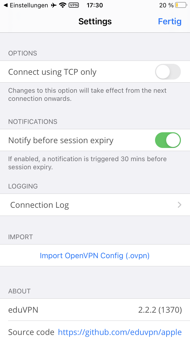 Ab jetzt ist diese Anleitung die selbe, wie VPN - eduVPN - Konfiguration für TUM, nur mit kleinen Bildern.