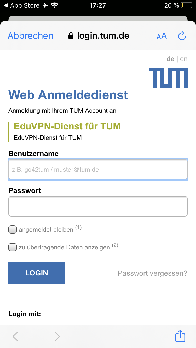 | Technische Universität München via LRZ-VPN | tum.de | VPN - eduVPN - Konfiguration für TUM |