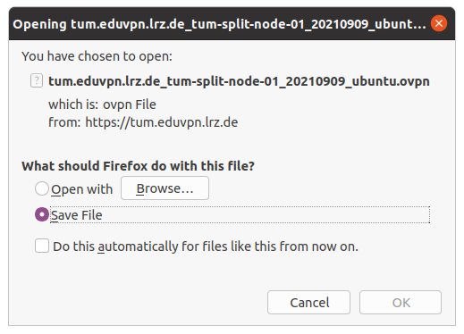 OpenVPN mit eduVPN-Konfigurationsdatei
