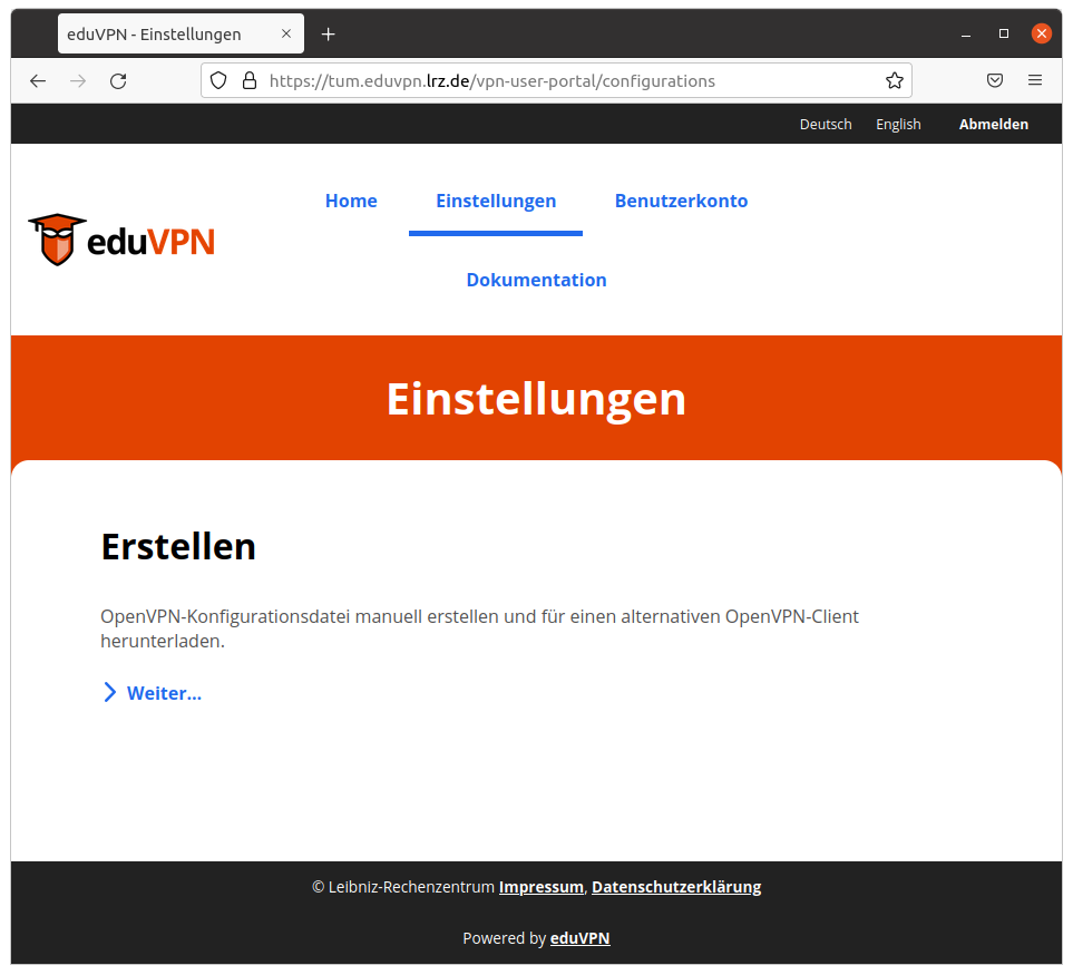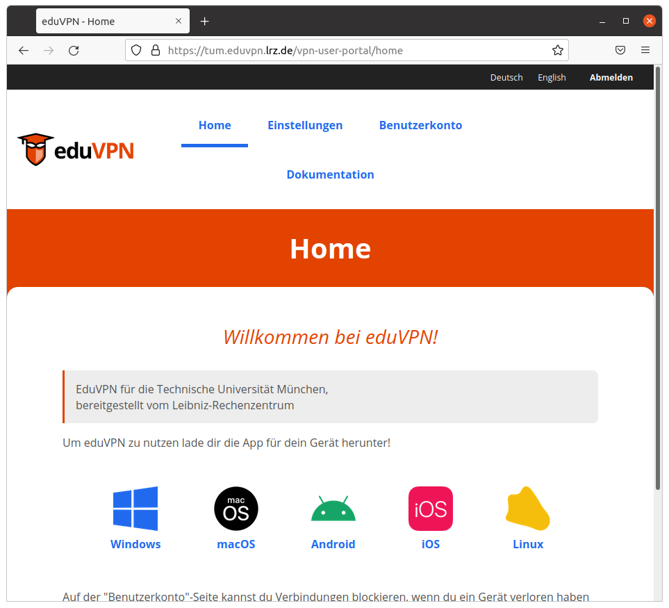 | Leibniz Rechenzentrum via LRZ-VPN | lrz.de | interne Dokumentation | int.eduvpn.lrz.de |