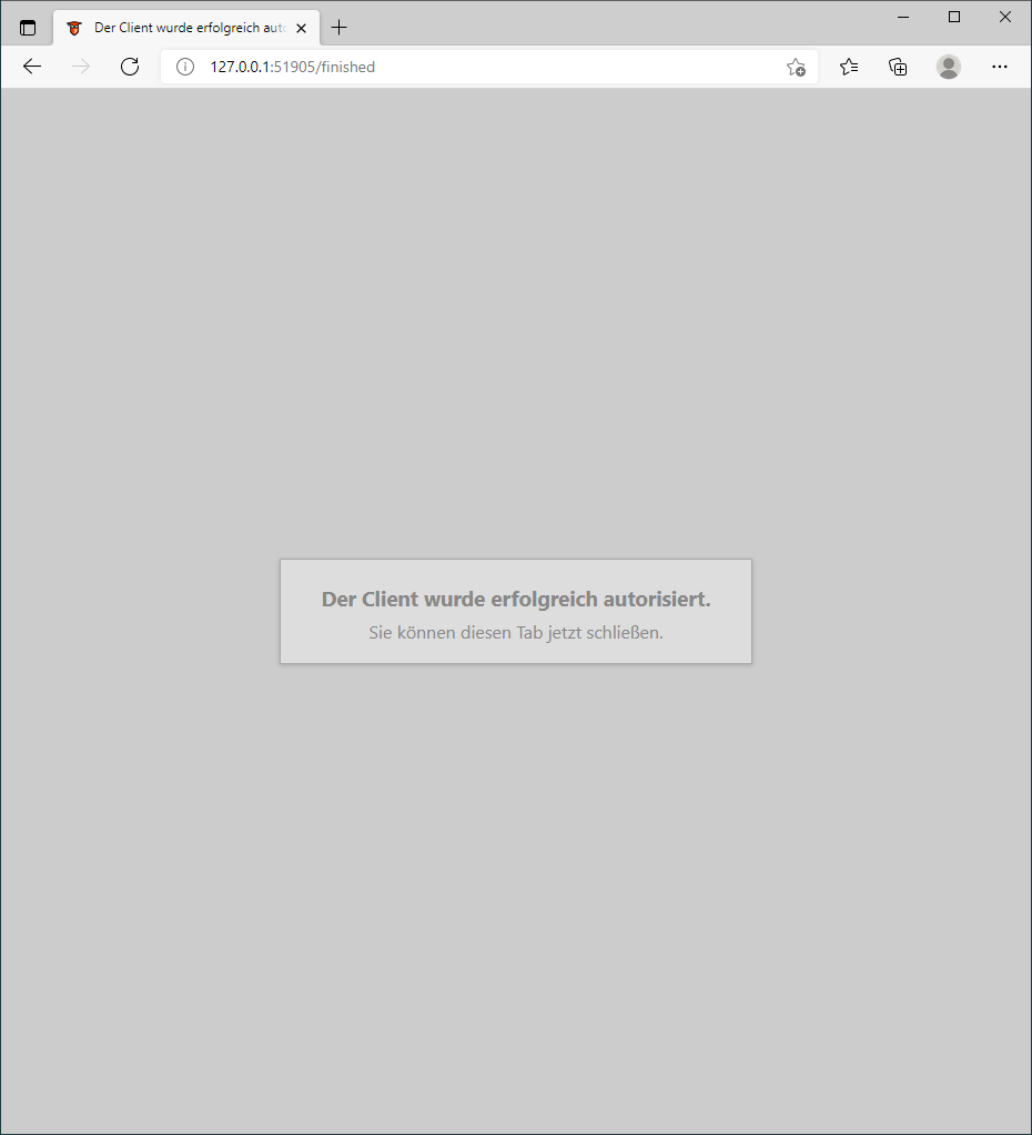 Nun können Sie das Browser-Anmelde-Fenster schließen