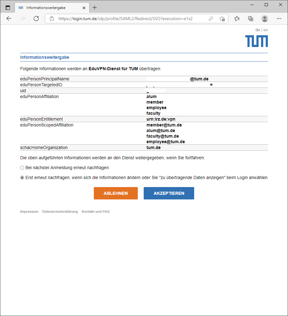 Ohne das Attribut urn:lrz.de:vpn können Sie den VPN-Dienst nicht nutzen