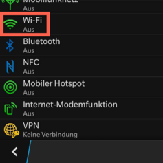 a) Im Menü „Netzwerkverbindungen“ auf Punkt „Wi-Fi“ gehen und mit dem offenen Netzwerk lrz verbinden