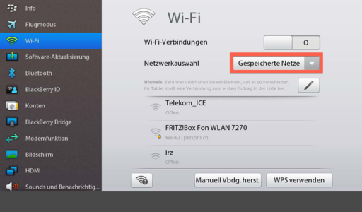 Einrichtung der WLAN-Unterstützung auf dem BlackBerry Playbook