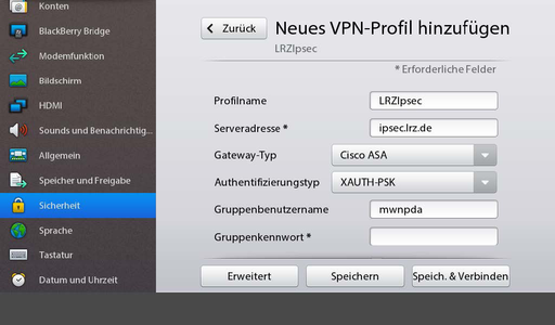 VPN - (IPsec) Blackberry Playbook - Archiv