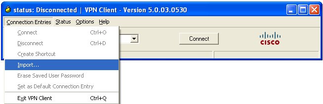 wählen Sie Import im Menü Connection Entries und stellen Sie den Ort der zuvor heruntergeladenen Datei lrz.pcf ein.