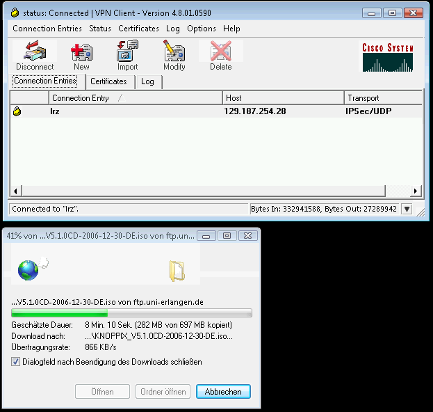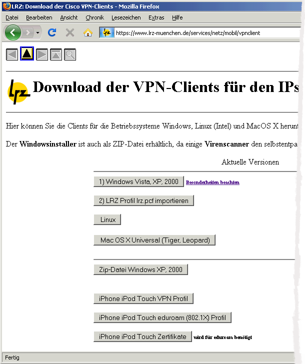 - Herunterladen des VPN-Clients und der Profildatei lrz.pcf.