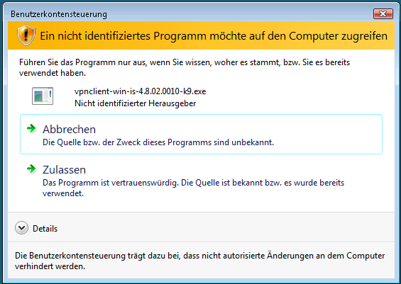 Bei der folgenden Sicherheitsabfrage wählen Sie "Zulassen".