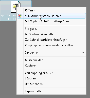 - Installation des VPN-Clients mit "Ausführen als Administrator".