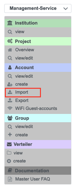 You can find the option to import an LMU Account in the IDM portal on the left under "Account | import".