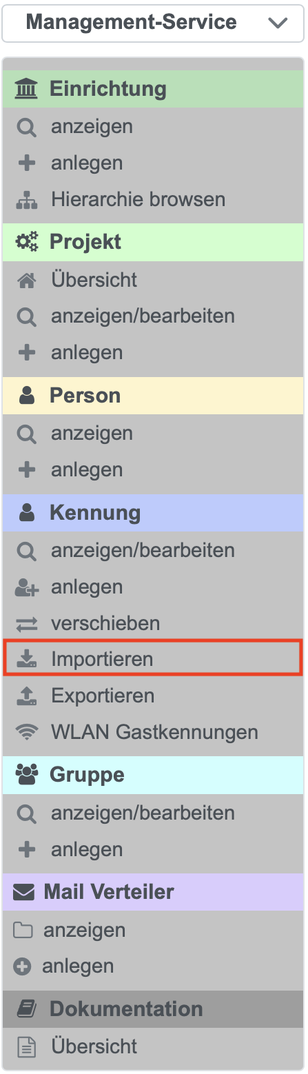 Dann sehen Sie links unter "Kennung" auch einen Menüpunkt "Importieren". Bei diesem Vorgang werden Sie u.a. auf eine Seite geleitet, in der Sie zusätzliche, vom LRZ betriebene Dienste für diese Kennung auswählen können (z.B. Mail oder Exchange, Backup und Archivierung)