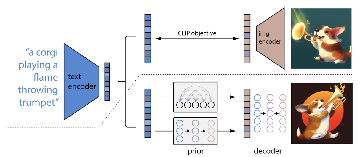 DALL-E-2 is a text to image synthesis model introduced by OpenAI in 2022. DALL-E-2 is composed of three important parts: