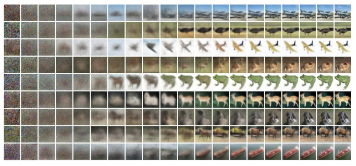 Diffusion models learn to recover the data by reversing the noising process that consists in systematically adding Gaussian noise to ruin the training data.